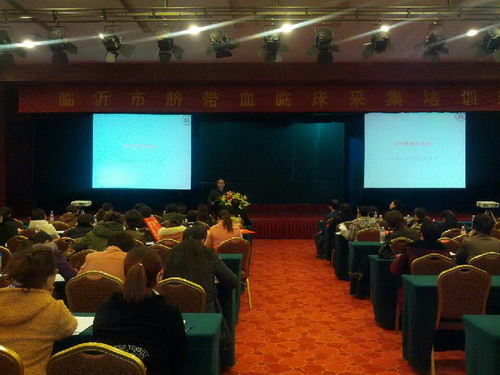 2013年3月31日,由山東省醫(yī)學(xué)會(huì)主辦,山東省臍帶血造血干細(xì)胞庫承辦的臨沂市臍帶血臨床采集培訓(xùn)班在臨沂市藍(lán)海國際大酒店圓滿舉行,本次臍帶血臨床采集培訓(xùn)班有來自三區(qū)九縣30余家醫(yī)院共計(jì)100余名醫(yī)生和護(hù)士參加,這也是臨沂市首次開展臍帶血臨床采集培訓(xùn)。