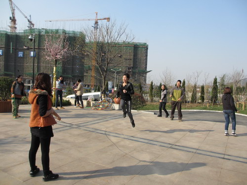 隨著哨聲的響起,大家就像兒時課間活動一樣積極主動地來到辦公樓前廣場集合,讓在電腦前勞累了近一天的身體得到舒展,踢毽子、跳繩、轉(zhuǎn)呼啦圈、打羽毛球,活動形式多樣,活動氛圍熱鬧非凡,大家在歡快的氛圍里一起運動,即增進(jìn)了感情,又鍛煉了身體。