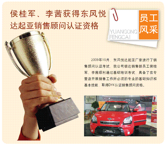 侯桂軍、李茜獲得東風(fēng)悅達起亞銷售顧問認證資格!
