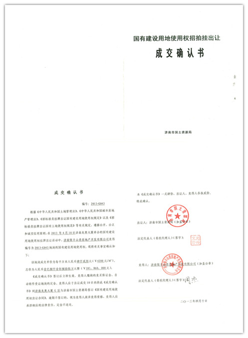 濟南銀豐山青房地產(chǎn)開發(fā)有限公司成功摘得土地并簽訂《成交確認書》