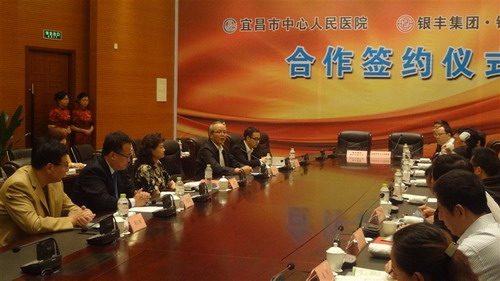 2013年5月8日,銀豐生物工程技術(shù)有限公司與宜昌市中心人民醫(yī)院在宜昌均瑤錦江國際大酒店正式簽署科研共建合作協(xié)議。