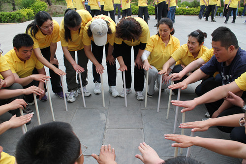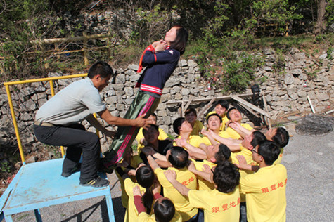 拓展訓(xùn)練期間,各隊(duì)分別進(jìn)行了“空中單杠”、“天梯”、“斷橋”、“高空相依” “盲人方陣”、“團(tuán)隊(duì)?wèi)?zhàn)鼓”、“圣塔”、“背摔”“蛟龍出海”等拓展項(xiàng)目。各隊(duì)成員充分發(fā)揮自己最大的潛能,尤其在高空類項(xiàng)目中敢于挑戰(zhàn)自我、超越自我,配合團(tuán)隊(duì)共同完成了任務(wù)。在團(tuán)體比賽中,“團(tuán)隊(duì)?wèi)?zhàn)鼓”的成績(jī)打破了拓展訓(xùn)練營(yíng)內(nèi)保持五年的記錄,顛球數(shù)目高達(dá)1211個(gè)。