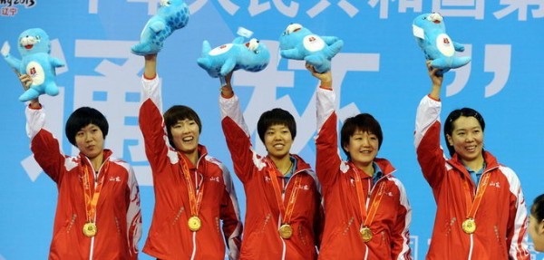 2013年9月5日,第12屆全運(yùn)會乒乓球比賽產(chǎn)生首枚金牌,山東銀豐乒乓球全運(yùn)代表隊(duì)奪得女子團(tuán)體冠軍。在與山西隊(duì)的決賽中,陳夢、李曉霞和顧玉婷均以3比0的比分擊敗各自對手,橫掃山西隊(duì)問鼎全運(yùn)會女團(tuán)冠軍。