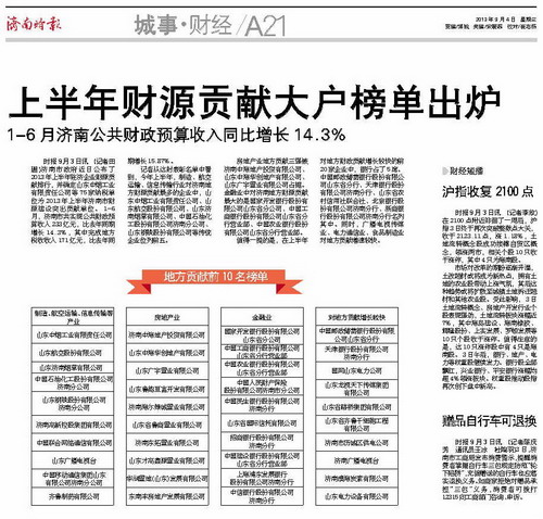 近日,濟(jì)南市政府公布了2013年上半年駐濟(jì)企業(yè)財(cái)源貢獻(xiàn)排行,并確定75家納稅單位為2013年上半年濟(jì)南市財(cái)源建設(shè)突出貢獻(xiàn)單位。其中,在地方貢獻(xiàn)前10名榜單中,銀豐集團(tuán)下屬的山東省齊魯干細(xì)胞工程有限公司名列地方貢獻(xiàn)增長(zhǎng)較快企業(yè)第六名。干細(xì)胞公司持續(xù)穩(wěn)定的納稅增長(zhǎng)與銀豐集團(tuán)回饋社會(huì)的企業(yè)精神相契合。不僅鞏固和壯大了全市財(cái)力資源,而且對(duì)促進(jìn)全市財(cái)政收入穩(wěn)定增長(zhǎng),支持社會(huì)經(jīng)濟(jì)發(fā)展,具有特殊而重要的意義。