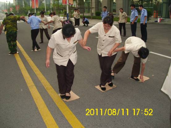為豐富員工業(yè)余生活,增進(jìn)員工之間友誼,放松員工工作壓力,2011年8月11日下午物業(yè)公司組織全體員工前往質(zhì)檢院項(xiàng)目組進(jìn)行趣味游戲比賽。