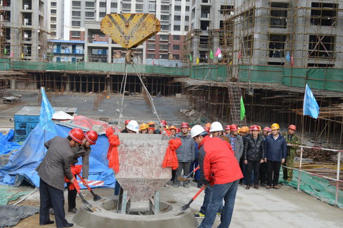 2014年12月11日上午11時17分,銀豐雅園施工現(xiàn)場鞭炮齊鳴,隨著最后一桶混凝土的澆筑,銀豐雅園項目全面順利封頂。臨沂美聯(lián)置業(yè)有限公司總經(jīng)理關(guān)寧、天元集團六公司總經(jīng)理張樹磊及其他參建單位領導、各大媒體出席了項目封頂活動。 自2014年6月份項目基礎施工以來,合理安排工序,嚴抓安全、質(zhì)量、成本,經(jīng)過半年的團結(jié)奮斗,順利完成了銀豐雅園項目整體封頂。
