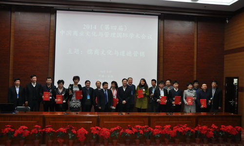 本次學術會議主題為“儒商文化與道德營銷”。山東大學商業(yè)文化與管理研究中心經過三年研究,利用科學方法,深入探討儒商文化特征、測量維度與評價方法,研制了中國儒商數(shù)據(jù)庫,設計出了儒商評價指數(shù),并通過采集企業(yè)表現(xiàn)、媒體反映、顧客反映數(shù)據(jù),對2014中國儒商企業(yè)進行了綜合評價,并向彭秀玲等十位企業(yè)家頒發(fā)2014中國儒商風范人物證書。