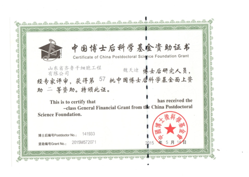 齊魯干細(xì)胞公司博士后魏天迪獲得中國(guó)博士后科學(xué)基金第57批面上資助