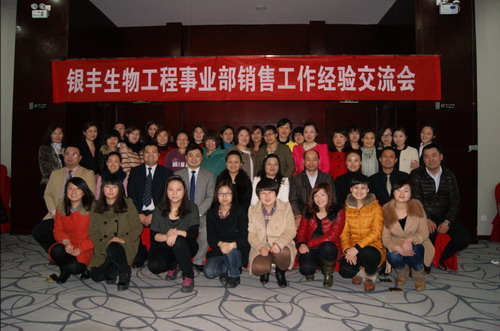 2013年3月1日,銀豐生物工程事業(yè)部于陜西西安組織召開了以“促交流、求發(fā)展”為主題的銷售工作經(jīng)驗交流會,生物工程綜合管理部總監(jiān)張伊辰以及安徽、湖南、黑龍江、陜西等各省公司總經(jīng)理、營銷部門負(fù)責(zé)人及部分市場人員共同參加了此次會議。